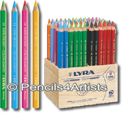 Extra thick pencils for a comfortable grip.  High pigment content gives a beautiful colour laydown from a thick, creamy core.