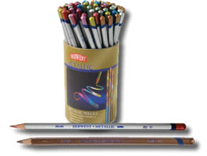 Beautiful ranges of both permanent and water-soluble metallic pencils from Derwent, Faber Castell, Lyra, Caran D'Ache and Bruynzeel Sakura. All lovely pencils with the Derwent range offering the widest range of colours.