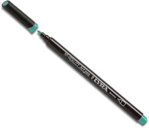 Derwent Graphik Line Painter Pens have a 0.5mm nib and come in 20 colours of opaque paint.  Dilutes with water but permanent when dry they are lightfast and can be used for creating layers and ribbles as well as washes and fine lines.