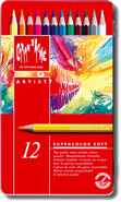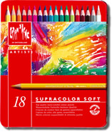 Supracolor from Caran D'Ache is widely recognised as one of the softest watercolour pencils around.  With a broad 3.8mm core these pencils have a really high breaking strength and give excellent coverage.  Use a brush to apply water to your dry picture to create beautiful wash effects.  Alternatively you can use the pencils onto all ready wetted paper and watch as the colour suffuses the page.  In 120 beautiful colours it is really easy to find exactly the shade you need to create top quality watercolour pencil work.  Supracolor is perfectly colour matched with the Caran D'Ache Pablo range - which is permanent, so the two pencils can be used in conjunction with one another if you need water resistant pencils for detail.