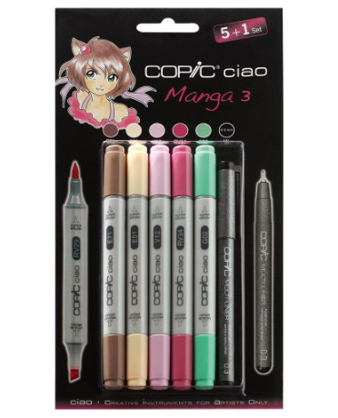 The Ciao markers have both a medium broad and super brush nib so are excellent for sketching, Manga and layout . The alcohol based ink is fast drying and will not smear.
