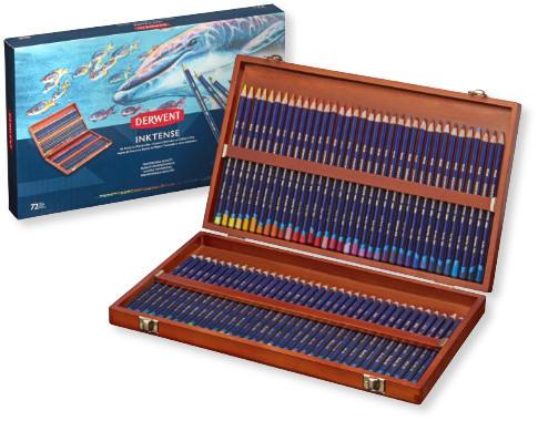 A beautiful presentation box containing the full range of 72 Derwent Inktense Pencils.