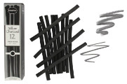 Faber Castell Pitt Natural Charcoal Sticks 3-6mm - box of 20Natural charcoal sticks are the oldest sketching and drawing material in the world. The greyish-blue shade glides softly across the paper rubs and smudges easily and can be erased without difficulty and repeatedly overlaid. Their blueish hue has always held a fascination even with the old masters.