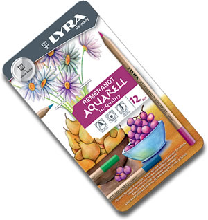 Lyra Rembrandt Aquarell pencils are top quality, watersoluble pencils.  With Lyra's usual highly pigmented mix these pencils provide sharp, bright colours which, when dissolved with a little water on a brush or with a spritzer, make beautiful, blendable watercolours.