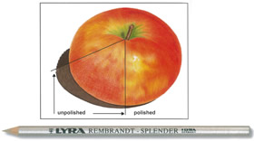 The Lyra Splender colourless blending pencil, when applied with a little pressure, gives coloured pencil drawings a glossy surface and blends colours together seamlessly.