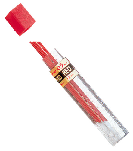 Pentel Super Hi-Polymer leads are extra strong with a slow wear rate.  Here in Red