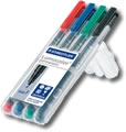 Staedtler Lumocolor Permanent Pens Pack 4Staedtler Lumocolor Permanent pens come with every attention to detail you would expect from such a renowned manufacturer. They can be used on almost any surface, including CD’s and DVD’s. The ink is fast drying, smudge proof and waterproof on the majority of surfaces. It comes in 9 brilliant colours, of which the black, yellow, orange and brown are all lightfast. The nib is very strong and the Dry Safe technology means it can be left uncapped for days without drying up. As well as all that, it also comes in 4 nib sizes. So it may well be the only marker you ever need!