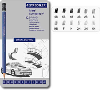 Staedtler Mars Lumograph Graphite Pencils - Tin of 12 Design Selection 6B-4H The Mars Lumograph Graphite Pencils are premium graphite pencil for sketching and drawing. The range comes in 16 degrees allowing for a wide range of expression. Especially break resistant thanks to super bonded lead.